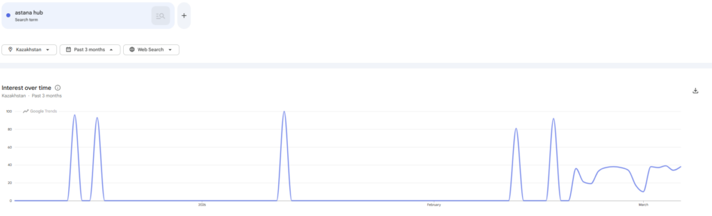 π And the data backs it up: Today, March 06, Google Trends shows an increase in search for “AIFC” and “AstanaHUB” words 100% higher compared to January and February 2026. (See screenshots attached).